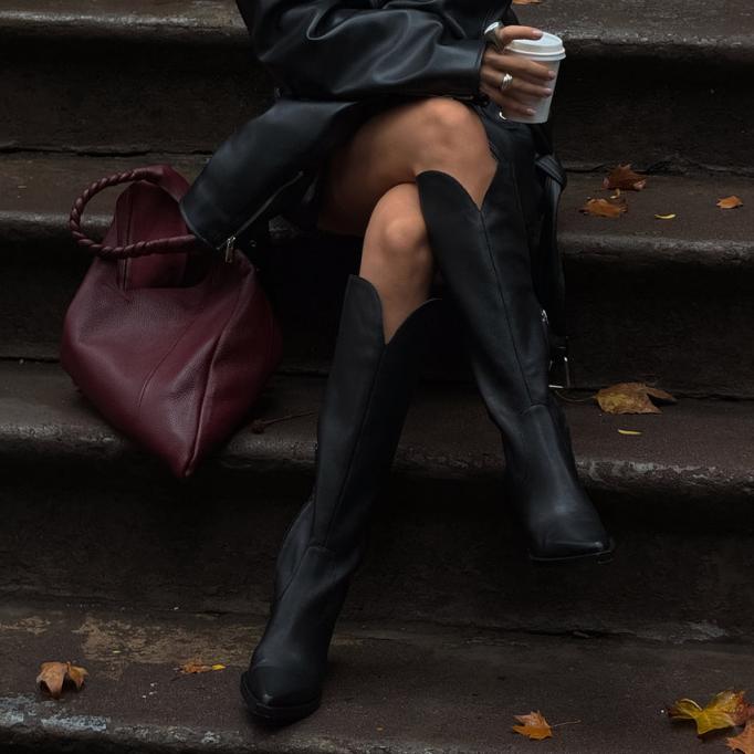 Product details RAJ is the minimalist meets western fall boot of your dreams. Knee-high and understated, she’s a wardrobe staple bound to be a go-to for seasons to come. Oh, and she’s crafted using recycled materials. Leather Upper Recycled Synthetic Outsole Recycled Textile Lining Water-based Leather Alternative Sock 15.4″ Shaft Height 2.4″ Heel Height 14.6″ Leg Circumference Measurements are based on Size 6 boot. For each half size larger, shaft height will increase by 2.5mm and leg circumference by 5mm. Imported