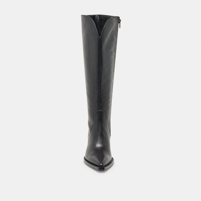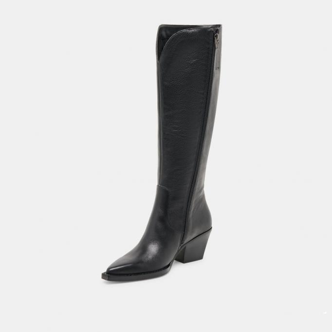 Product details RAJ is the minimalist meets western fall boot of your dreams. Knee-high and understated, she’s a wardrobe staple bound to be a go-to for seasons to come. But wait, there’s more—she’s crafted using recycled materials and available in wide calf sizes. Leather Upper Recycled Synthetic Outsole Recycled Textile Lining Water-based Leather Alternative Sock Full Length Side Zipper Imported Please refer to RAJ size guide in image position 5 for individual calf size measurements.
