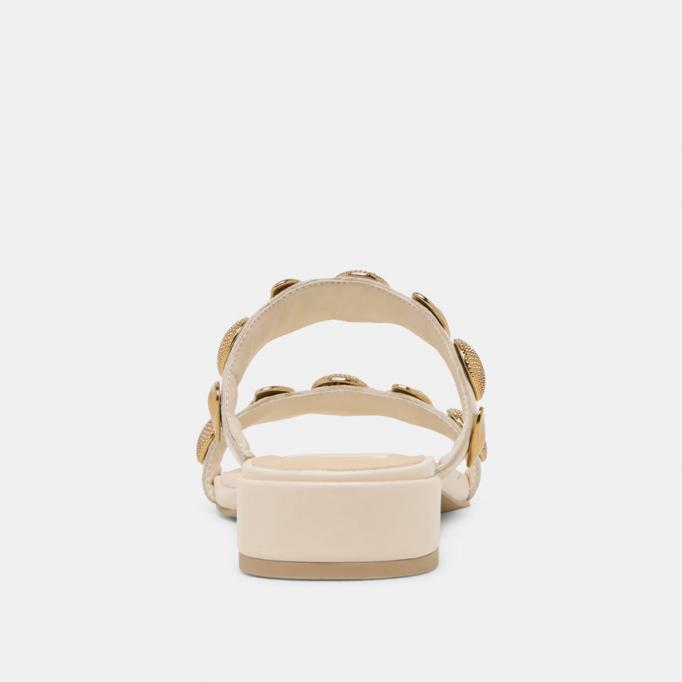 Product details A tiny block heel, a whole lot of flair. FARROW is a comfy, yet elevated sandal with an unmissable design. Crafted from leather, her double straps are studded with chunky a gold finish. These sandals are just the right amount of bold to take a casual outfit to the next level. Leather Upper Recycled Synthetic Outsole Water-based Leather Alternative Lining + Sock 1.2″ Heel Height Imported