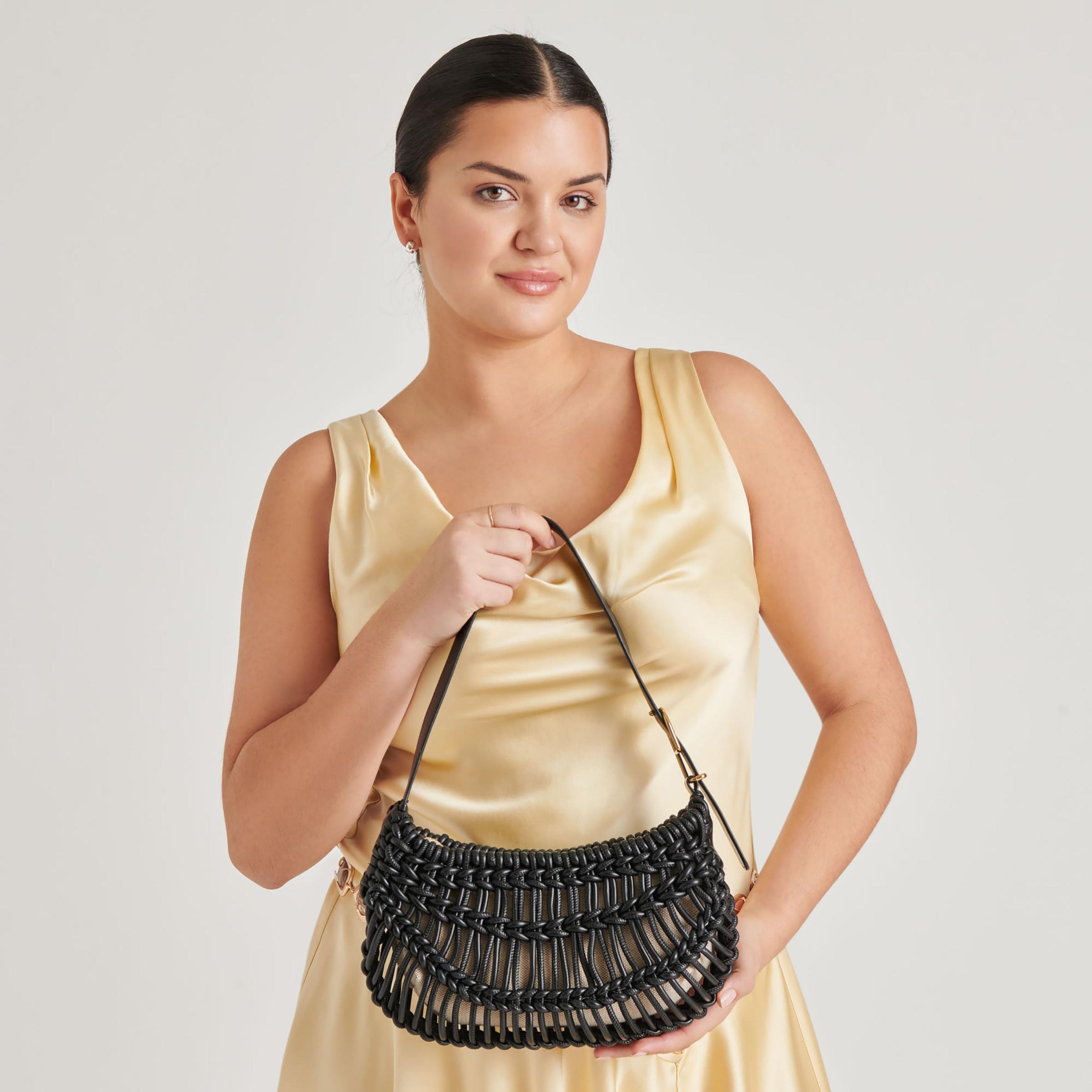 Product details CANNES is effortlessly cool and refined. Her rope-like woven design adds a chic upgrade to any warm weather look while her compact silhouette and classic colorways go with everything. Faux Leather with Synthetic Trim 5.5″ Height, 10.3″ Width, 2″ Depth Zipper Closure 1 Interior Slip Pocket, 1 Interior Zip Pocket 8″ Adjustable Shoulder Strap Drop Imported Ships in recycled packaging, including a recycled dust bag, tissue paper, polybags, and hangtags.