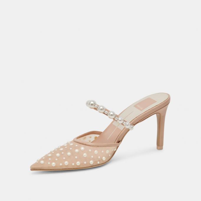 Product details Timeless, modern, and femme all in one. KATIK PEARL features an uber sophisticated silhouette with a mesh design covered in delicate pearls. She’s perfect for bridal or wedding guest looks. Textile Upper Rubber Outsole Synthetic Sock + Lining 3.3″ Heel Height Imported
