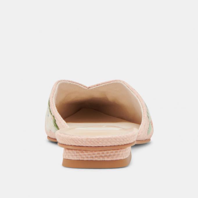 Product details ELM is the pointed-toe mule of the season. Coated in gorgeous raffia or sequin, this flat is vibrantly adorned with blooming florals and crafted from recycled materials. Add ELM to your spring rotation in white, natural, and pink. Textile Upper Recycled Synthetic Outsole Recycled Textile Lining Water-based Leather Alternative Sock 0.6″ Heel Height Imported