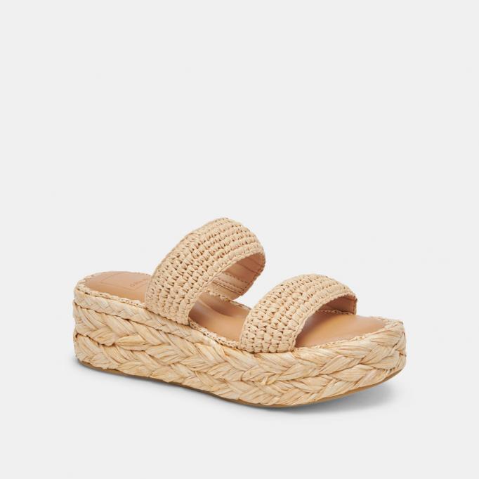 Product details CORLA is all about texture. This platform sandal is raffia from top to bottom with eye-catching details in three must-have colorways.